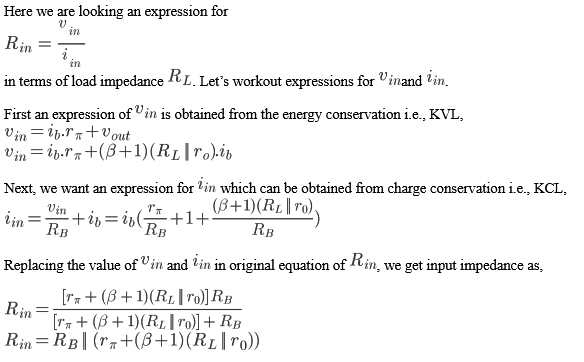 Since, 𝛽 is typically of the order of 100, the input impedance is ~100 times greater than . For , .